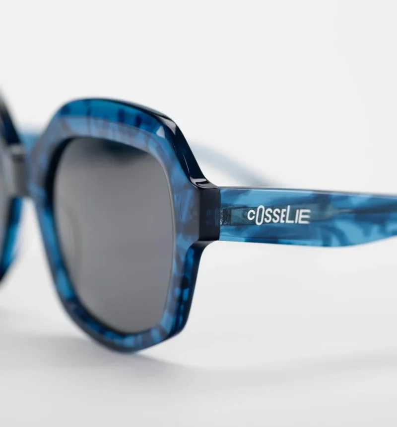 Το υπερμεγέθες, γεωμετρικό σχήμα κολακεύει και δίνει instant fashion-statement σε κάθε outfit. Ο σκελετός από οξική κυτταρίνη σε μπλε ταρταρούγα χαρίζει πολυτελή υφή και μοναδική φωτεινότητα, ενώ οι κλασικοί μεντεσέδες εξασφαλίζουν σταθερή, άνετη εφαρμογή.