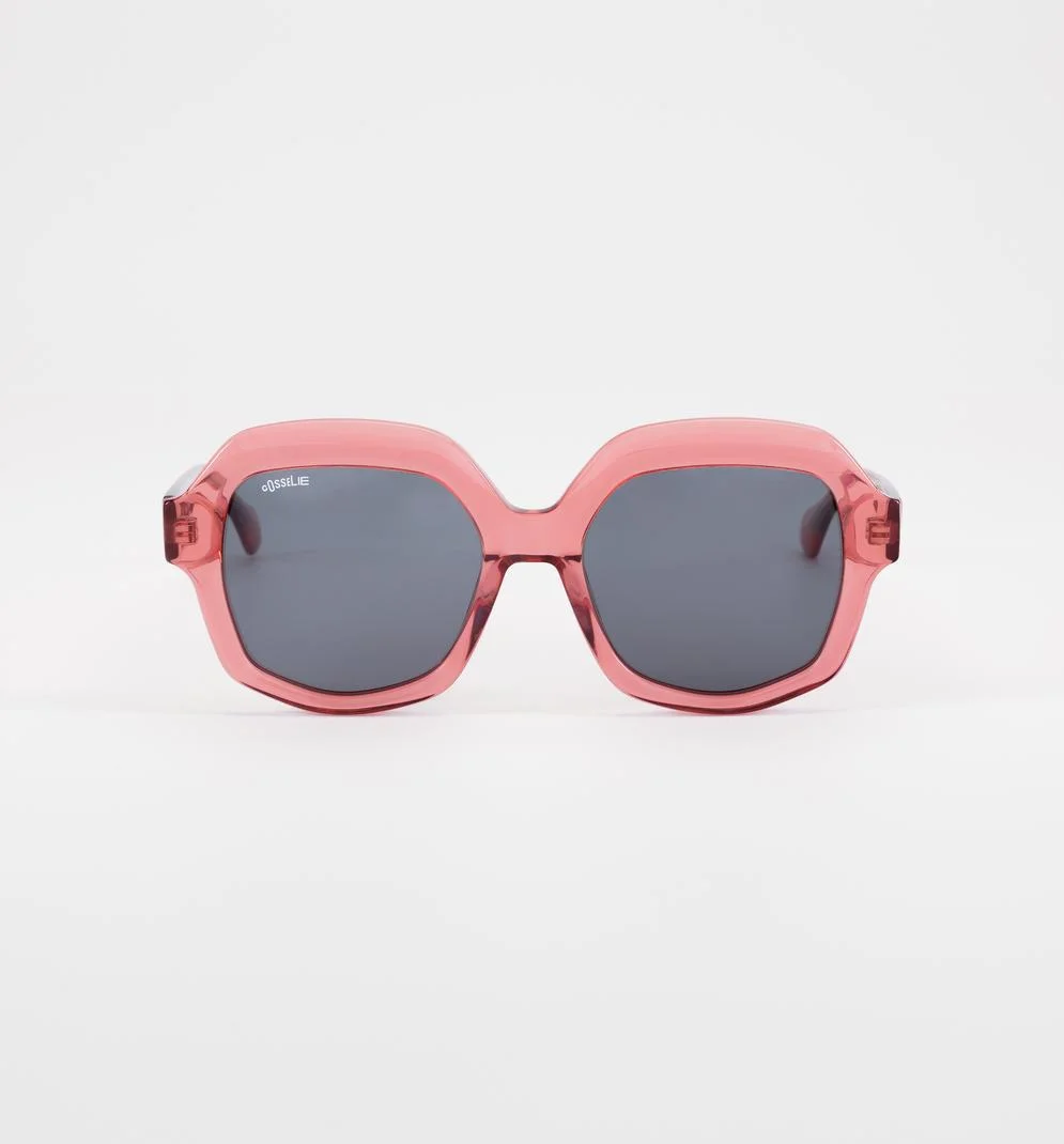Το υπερμεγέθες γεωμετρικό σχήμα κολακεύει, «σηκώνει» κάθε outfit και δίνει αυτό το effortless casual-chic vibe που ζητάς. Ο διάφανος ροζ σκελετός από οξική κυτταρίνη (acetate) χαρίζει premium αίσθηση, ενώ οι κλασικοί μεντεσέδες εξασφαλίζουν σταθερή εφαρμογή όλη μέρα.
