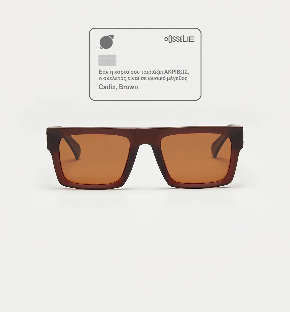 Αυστηρό τετραγωνισμένο προφίλ, γήινος καφέ τόνος και καθαρή όραση χωρίς θάμβωση — τα Cadiz ολοκληρώνουν κάθε look. 😎🤎☀️