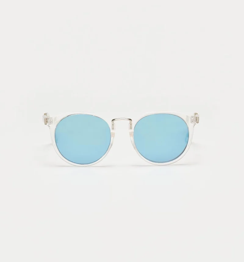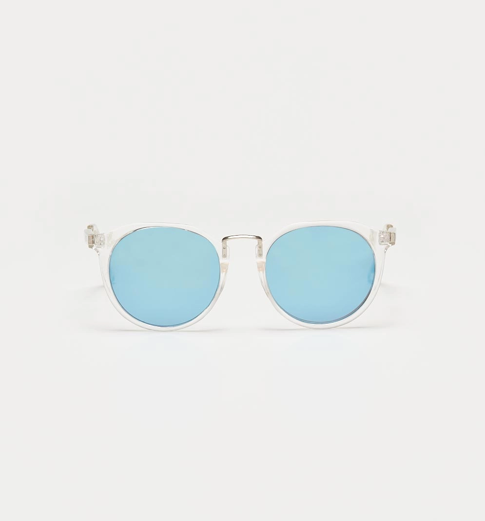 Διάφανο frame με μπλε καθρέφτη που φωτίζει το στυλ σου και κόβει τις αντανακλάσεις. 😎💙